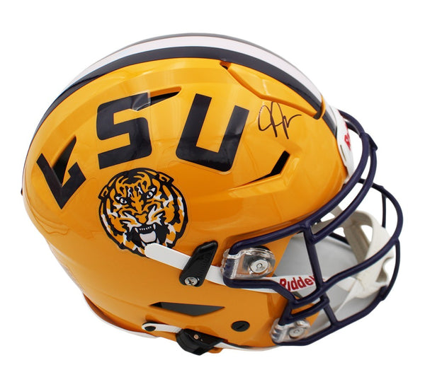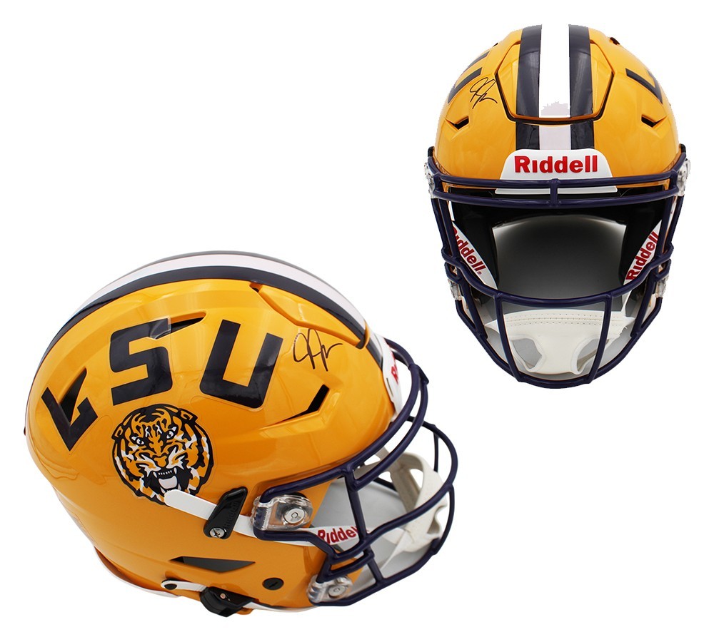 A LSU Tigers Speed Flex Authentic NCAA Helmet hand signed by Justin Jefferson. The item and signature are in excellent condition. Justin is a wide receiver for the Minnesota Vikings. He played college football at LSU. He was a CFP National Champion and Second-team All-SEC in 2019. AUTHENTICATION: The item is accompanied by a Beckett Serial Numbered and Databased Hologram