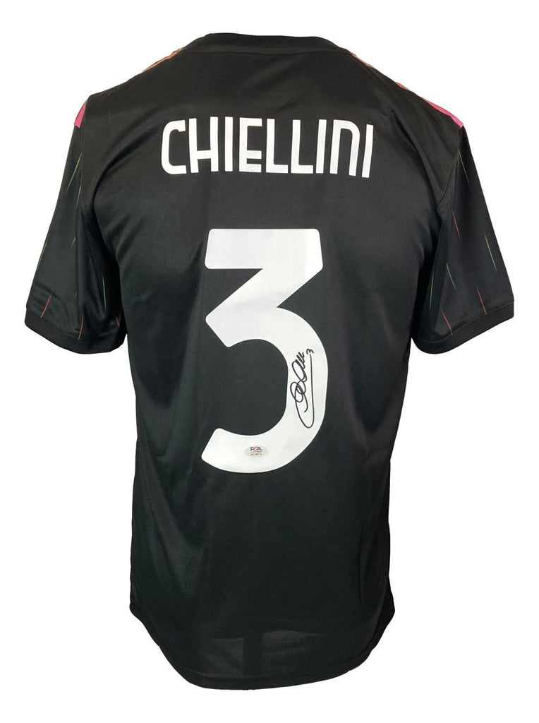 Featured is a Giorgio Chiellini signed Juventus Adidas soccer jersey. This jersey was hand signed by Chiellini and comes with the PSA hologram. This jersey size may vary. This item would make a great addition to any sports memorabilia collection!. SPECIFICATIONS Autographed By: Giorgio Chiellini Team: Juventus Sport: Soccer Authentication: Professional Sports Authenticator (PSA)