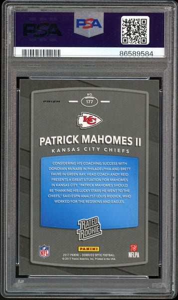 2017 Donruss Optic Holo Rated Rookie Patrick Mahomes RC On Card PSA 9/10 Auto