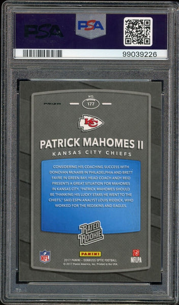 2017 Donruss Optic Pink Holo Patrick Mahomes RC On Card PSA 9/10 Auto