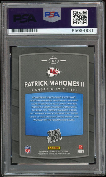 2017 Donruss Optic Rated Rookie Patrick Mahomes RC Blue PSA/DNA Auto GEM MINT 10