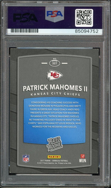 2017 Donruss Rated Rookie Patrick Mahomes RC Blue Ink PSA/DNA Auto GEM MINT 10