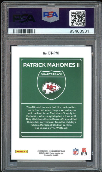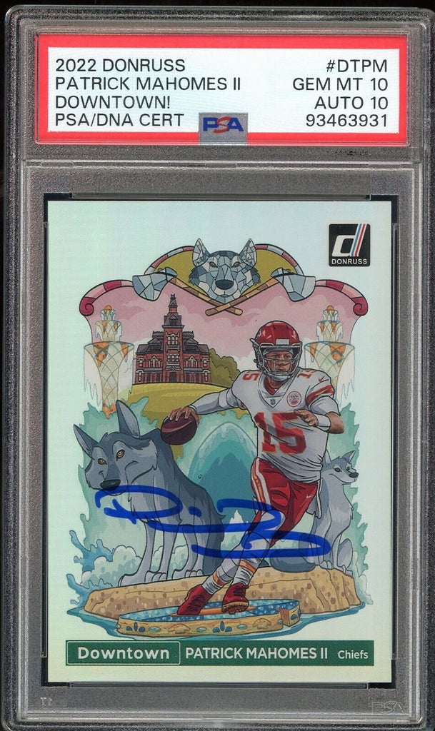 2022 Donruss Downtown #DTPM Patrick Mahomes On Card PSA 10/10 Auto GEM MINT