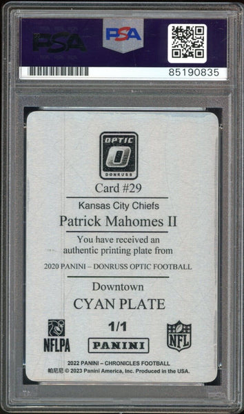 2022 Panini Cyan Plate 1/1 Optic Downtown Patrick Mahomes PSA Auto GEM MINT 10