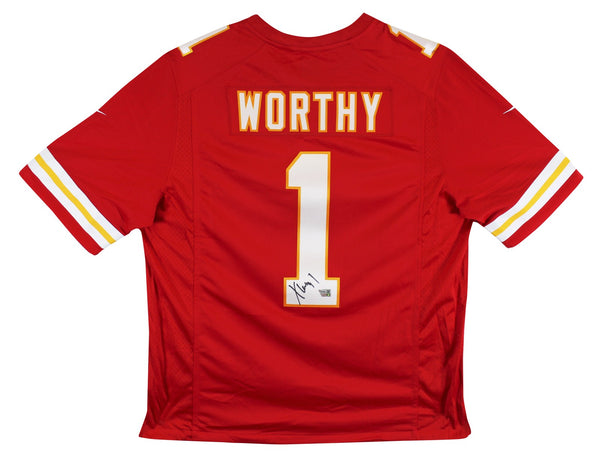 This Autographed Red Nike Limited Jersey has been Personally Signed by Xavier Worthy of the Kansas City Chiefs. This item is 100% Authentic to includes a numbered hologram by Fanatics. The authenticity can be verified on Fanatics website. This is a XX-Large sized Jersey.