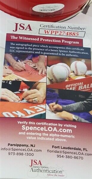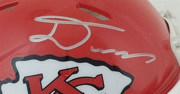 This autographed Riddell Speed mini helmet has been personally hand-signed by Damien Williams of the Kansas City Chiefs. This autograph is certified by James Spence Authentication's (JSA) Witnessed Protection Program. That means that a JSA representative was present when this item was signed. It comes with the numbered hologram and matching Certificate of Authenticity.