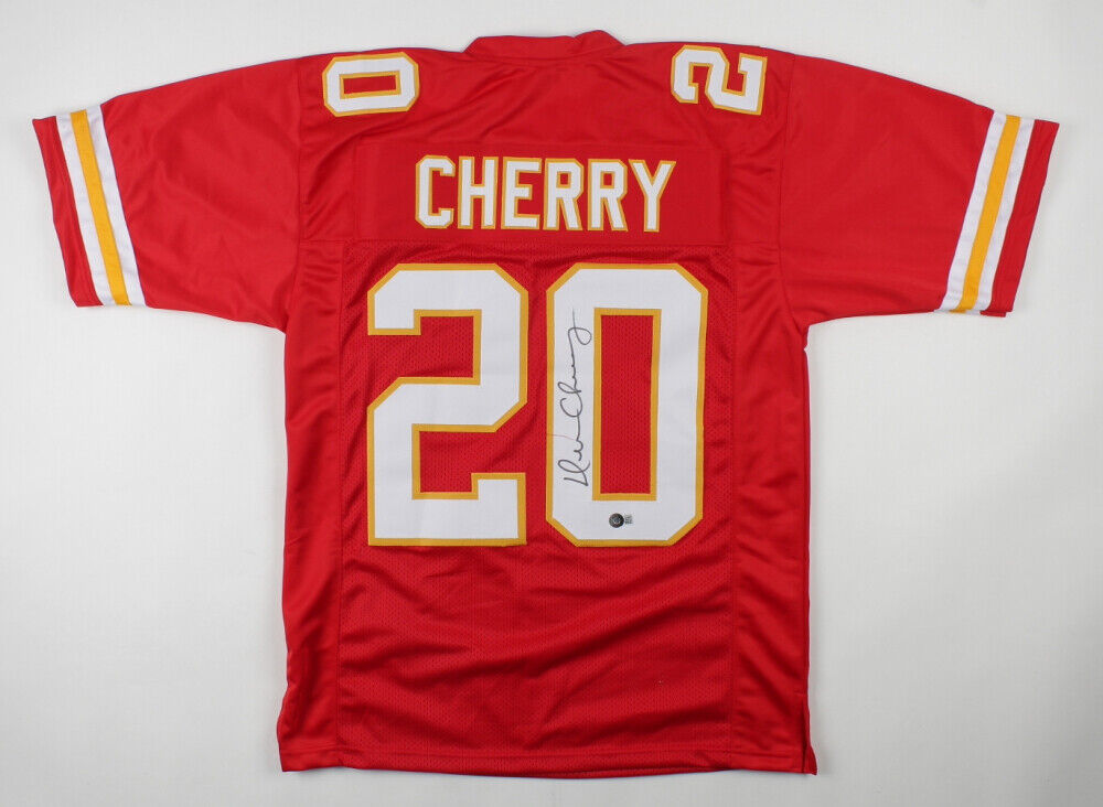 Custom on-field style jersey. Everything is sewn on, size XL. Hand-signed by Deron Cherry.The lot / autograph(s) includes an official Beckett Authentication Services serially-numbered hologram for authenticity purposes. The signing of this item was witnessed by Beckett.Authentication: Beckett Hologram