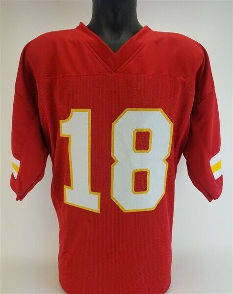 Custom on-field style jersey. Everything is sewn on, size XL. Hand-signed and inscribed in black felt-tip pen by Emmitt Thomas. The lot / autograph(s) includes an official James Spence Authentication (JSA) hologram and matching COA for authenticity purposes. The signing of this item was witnessed by JSA.Authentication: JSA COA