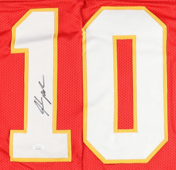 Custom on-field style jersey. Everything sewn on, size XL. Hand-signed by Isaih Pacheco.The lot / autograph(s) includes an official James Spence Authentication (JSA) hologram for authenticity purposes.Authentication: JSA Hologram