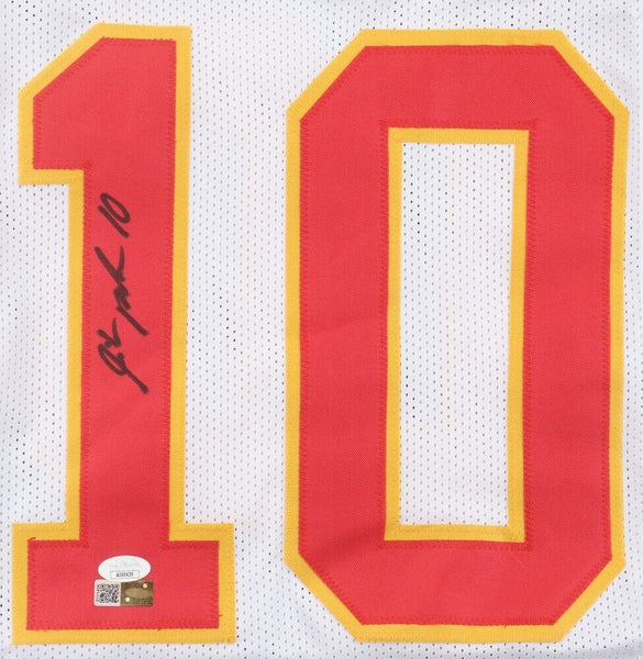 Custom on-field style jersey. Everything sewn on, size XL. Hand-signed by Isaih Pacheco.The lot / autograph(s) includes an official James Spence Authentication (JSA) hologram and QR Code card for authenticity purposes.Authentication: JSA QR Code card
