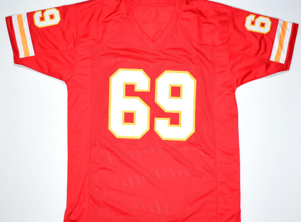 Jared Allen Autographed Red Pro Style Jersey- Beckett W Hologram *Black THIS IS NOT AN NFL JERSEY. THIS HAS NO TAGS, NO LOGOS, NO EMBLEMS. This is a Jared Allen of the Kansas City Chiefs hand autographed custom made (Non Name Brand) authentic style (Stitched Letters and Numbers) jersey. This item has a Beckett Witnessed Authentication, which comes with a numbered hologram and a QR code for verification. You can view this item on the Beckett website. It was signed either at a public autograph appearance or a private signing. This is a stock photo of the item. Although you may not receive this exact item, the item you receive is virtually identical, brand new, and in great shape. Jersey size is XL. .