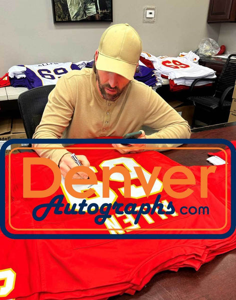 Jared Allen Autographed/Signed Pro Style Red Jersey BAS 40093 The number in the listing title is just an inventory sku for our records and is not the authentication number. The item pictured is a stock photo unless otherwise noted. This is a custom pro style Red XL jersey with sewn on name and numbers that was personally autographed by Jared Allen. Includes a certificate of authenticity from Beckett Authentication Services (BAS) and Denver Autographs.