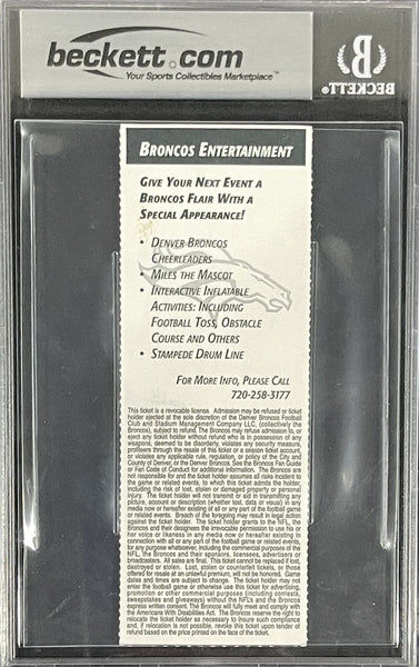 Jared Allen Signed Kansas City Chiefs NFL Debut Ticket 9/12/04 Slab Beckett 36274 The number in the listing title is just an inventory sku for our records and is not the authentication number. This is a 09/14/2014 ticket stub that was personally autographed by Jared Allen with inscription "NFL Debut". This was slabbed by Beckett Authentication Services (BAS) includes a certificate of authenticity from Denver Autographs.