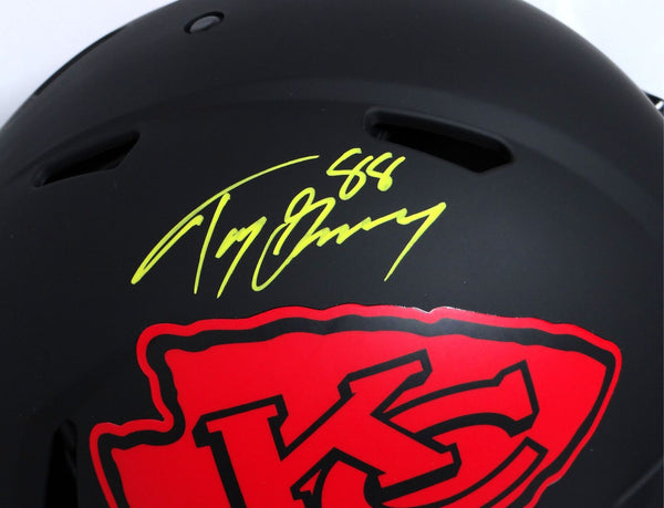 This is a hand autograph of Tony Gonzalez of the Kansas City Chiefs on a Riddell Football Full Size Eclipse Speed Authentic Helmet. This item has a Beckett Witness Authentication, which comes with a numbered sticker and a matching card for verification. You can view this item on the Beckett Authentication website, and it shows when and where the item was signed. It was signed either at a public autograph appearance or a private signing. This is a stock photo of the item. Although you may not receive this exact item, the item you receive is virtually identical and brand new in great shape. This is a hand autograph of Tony Gonzalez of the Kansas City Chiefs on a Riddell Football Full Size Eclipse Speed Authentic Helmet. This item has a Beckett Witness Authentication, which comes with a numbered sticker and a matching card for verification. You can view this item on the Beckett Authentication website, and it shows when and where the item was signed. It was signed either at a public autograph appearance or a private signing. This is a stock photo of the item. Although you may not receive this exact item, the item you receive is virtually identical and brand new in great shape.
