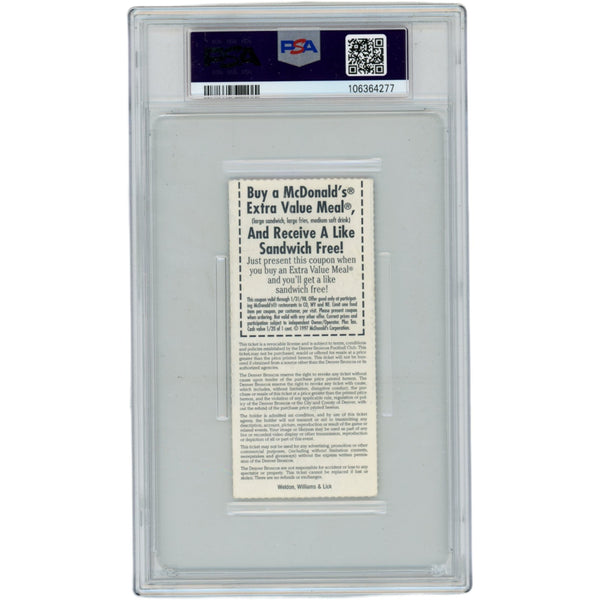 The number in the listing title is just an inventory sku for our records and is not the authentication number. The item pictured is a stock photo unless otherwise noted. This is a Kansas City Chiefs NFL Debut Slabbed Ticket Stub rated PSA 2/10 that was personally autographed by Tony Gonzalez includes "NFL Debut" inscription. Includes a certificate of authenticity from Proffesional Sports Authenticator (PSA) and Denver Autographs.FREE SHIPPING within the USA on orders over $10!