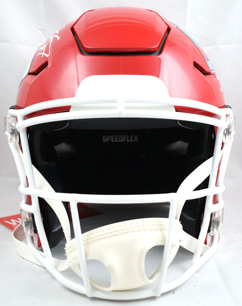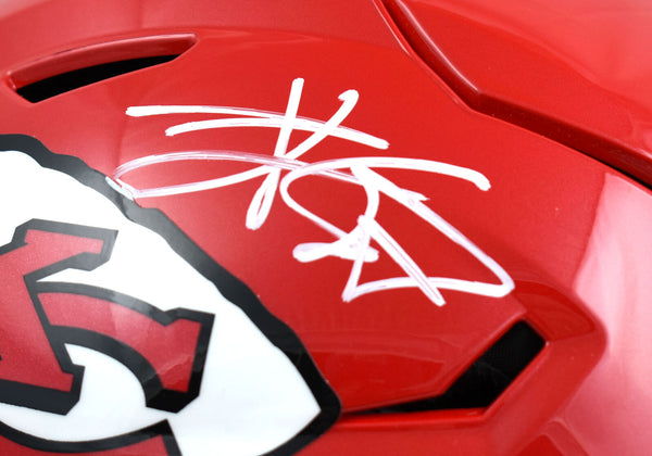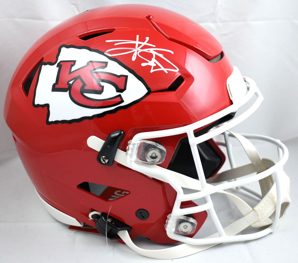 This is a Travis Kelce of the Kansas City Chiefs Autographed Riddell football full size SB 57 Speed Flex Authentic helmet. This item has a Beckett Witnessed Authentication, which comes with a numbered sticker hologram and a QR code for verification. You can view this item on the Beckett Authentication website and it shows when and where the item was signed. It was signed either at a public autograph appearance or a private signing. This is a stock photo of the item. Although you may not receive this exact item, the item you receive is virtually identical, brand new, and in great shape. *Autograph location may vary* This is a Travis Kelce of the Kansas City Chiefs Autographed Riddell football full size SB 57 Speed Flex Authentic helmet. This item has a Beckett Witnessed Authentication, which comes with a numbered sticker hologram and a QR code for verification. You can view this item on the Beckett Authentication website and it shows when and where the item was signed. It was signed either at a public autograph appearance or a private signing. This is a stock photo of the item. Although you may not receive this exact item, the item you receive is virtually identical, brand new, and in great shape. *Autograph location may vary*
