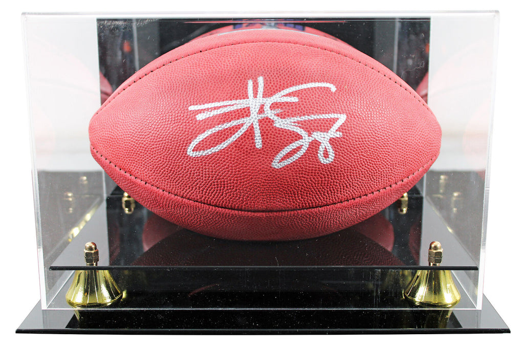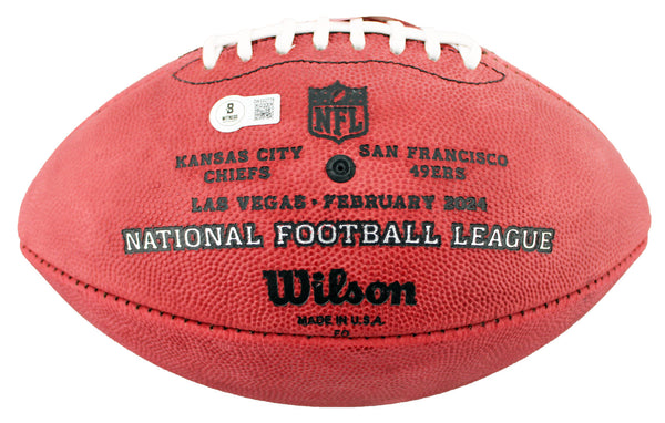 This Autographed Super Bowl LVIII Logo Official Wilson 2020 "The Duke" Football W/ Uv Mirrored Back Acrylic Display Case has been Personally Signed by Travis Kelce of the Kansas City Chiefs. This item is 100% Authentic to include a hologram by Beckett Authentication Services. This item will come with an affixed Beckett Authentication Services (BAS) authentication sticker, which includes a scannable QR code to verify authenticity. Please note that Beckett no longer provides serial-numbered COA cards, and the attached BAS sticker will serve as the complete authentication for this item. This is a BAS Witnessed Protection Program item which means a Beckett Authentication Service representative was present when this item was being signed. We conducted an autograph signing with Travis Kelce where multiples of the same item were signed. While the photographs are representative of this item, the size, placement and strength of the signature may vary. Each item is hand signed, therefore, each autograph is unique. This item can be verified through BAS Witnessed.