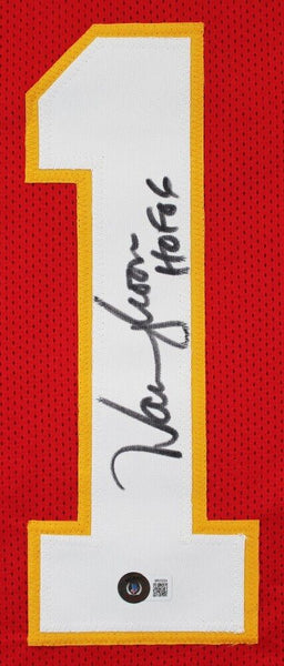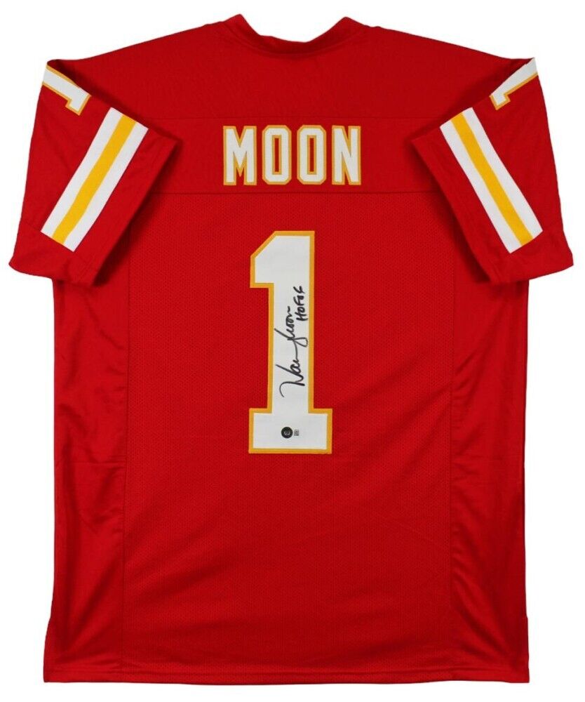 Jersey is size XL, everything is sewn on, and has been hand-signed and inscribed by Warren Moon.The autograph includes an official Beckett Authentication Services serially numbered hologram and scannable QR Code card for authenticity purposes. The signing of this item was witnessed by Beckett.Authentication: Beckett Hologram with Scannable QR Code card