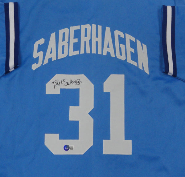 KANSAS CITY ROYALS CUSTOM REPLICA JERSEY of Kansas City Royals World Series Champion BRET SABERHAGEN. This jersey is signed with Black Paint Pen. This jersey is size XL with all letters and numbers sewn in. This item was signed at a public signing with us and would make a great addition to any Royals collection. This autograph is guaranteed to be 100% authentic and will include a COA hologram from Beckett Authentication.