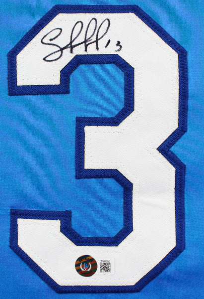 This Autographed Light Blue Pro Style Jersey has been Personally Signed by Salvador Perez of the Kansas City Royals. This item is 100% Authentic to include a hologram by Beckett Authentication Services. This item will come with an affixed Beckett Authentication Services (BAS) authentication sticker, which includes a scannable QR code to verify authenticity. Please note that Beckett no longer provides serial-numbered COA cards, and the attached BAS sticker will serve as the complete authentication for this item. This is a BAS Witnessed Protection Program item which means a Beckett Authentication Service representative was present when this item was being signed. We conducted an autograph signing with Salvador Perez where multiples of the same item were signed. While the photographs are representative of this item, the size, placement and strength of the signature may vary. Each item is hand signed, therefore, each autograph is unique. This item can be verified through BAS Witnessed. This is a X-Large sized, non-branded, custom-stitched Jersey.