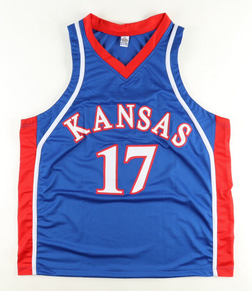 Custom on-court style jersey. Everything is sewn on, size XL. Hand-signed by Bill Self (HOF).The lot / autograph(s) includes an official James Spence Authentication (JSA) hologram and matching COA for authenticity purposes.Authentication: JSA COA