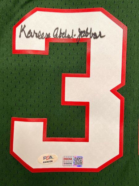 Jersey autographed by Kareem Abdul-Jabbar who played for the Los Angeles Lakers and Bucks. The autograph of Kareem Abdul-Jabbar on this jersey was authenticated by a team of experts at PSA/DNA so you can rest assured you are purchasing the real deal.