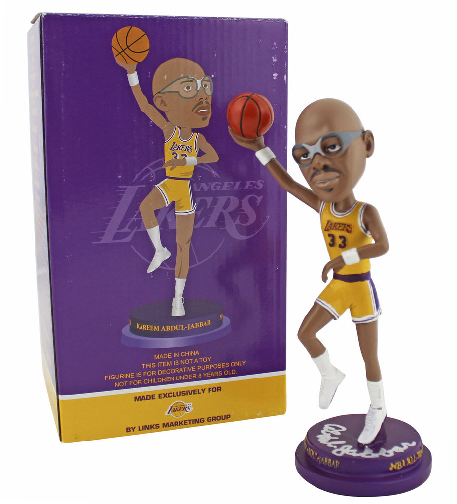 This Autographed Bobblehead has been Personally Signed by Kareem Abdul-Jabbar of the Los Angeles Lakers. This item is 100% Authentic to include a hologram by Beckett Authentication Services. This item will come with an affixed Beckett Authentication Services (BAS) authentication sticker, which includes a scannable QR code to verify authenticity. Please note that Beckett no longer provides serial-numbered COA cards, and the attached BAS sticker will serve as the complete authentication for this item. The authenticity can be verified on Beckett Authentication Services website. The bobblehead has been repaired, please refer to photos for condition prior to purchase.