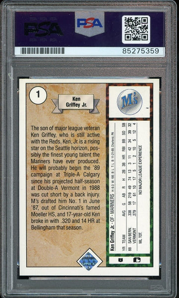 Ken Griffey Jr PSA 10 AUTO Rookie 1989 Upper Deck #1 RC On Card GEM MINT AUTO