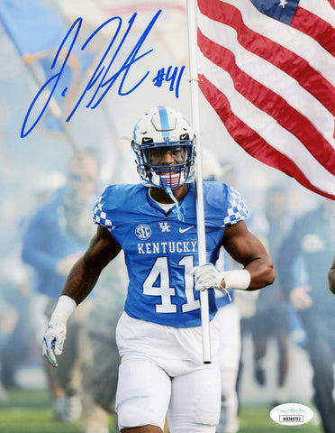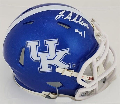 Josh Allen, former All-American linebacker for the Wildcats, has hand signed this Kentucky Riddell Speed mini helmet at a private signing. This item comes with a certificate of authenticity (COA) from JSA - James Spence Authentication and was signed in the presence of one of their representatives. You will receive a serial-numbered COA along with a matching serial-numbered sticker on the helmet. The authenticity can be verified online by entering the serial number.Item pictured may not be the exact item you will receive. It will be similar quality, and we guarantee your satisfaction.