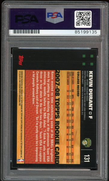 2007-08 Topps Chrome #131 Kevin Durant RC On Card PSA/DNA Auto GEM MINT 10
