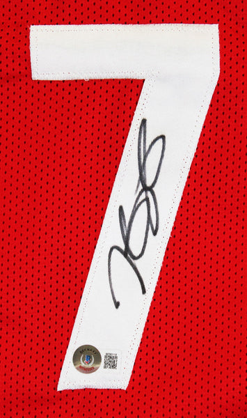 This Autographed Red Pro Style Jersey has been Personally Signed by Kevin Durant of the Houston Rockets. This item is 100% Authentic to include a hologram by Beckett Authentication Services. This item will come with an affixed Beckett Authentication Services (BAS) authentication sticker, which includes a scannable QR code to verify authenticity. Please note that Beckett no longer provides serial-numbered COA cards, and the attached BAS sticker will serve as the complete authentication for this item. This is a BAS Witnessed Protection Program item which means a Beckett Authentication Service representative was present when this item was being signed. We conducted an autograph signing with Kevin Durant where multiples of the same item were signed. While the photographs are representative of this item, the size, placement and strength of the signature may vary. Each item is hand signed, therefore, each autograph is unique. This item can be verified through BAS Witnessed. This is a X-Large sized, non-branded, custom-stitched Jersey.