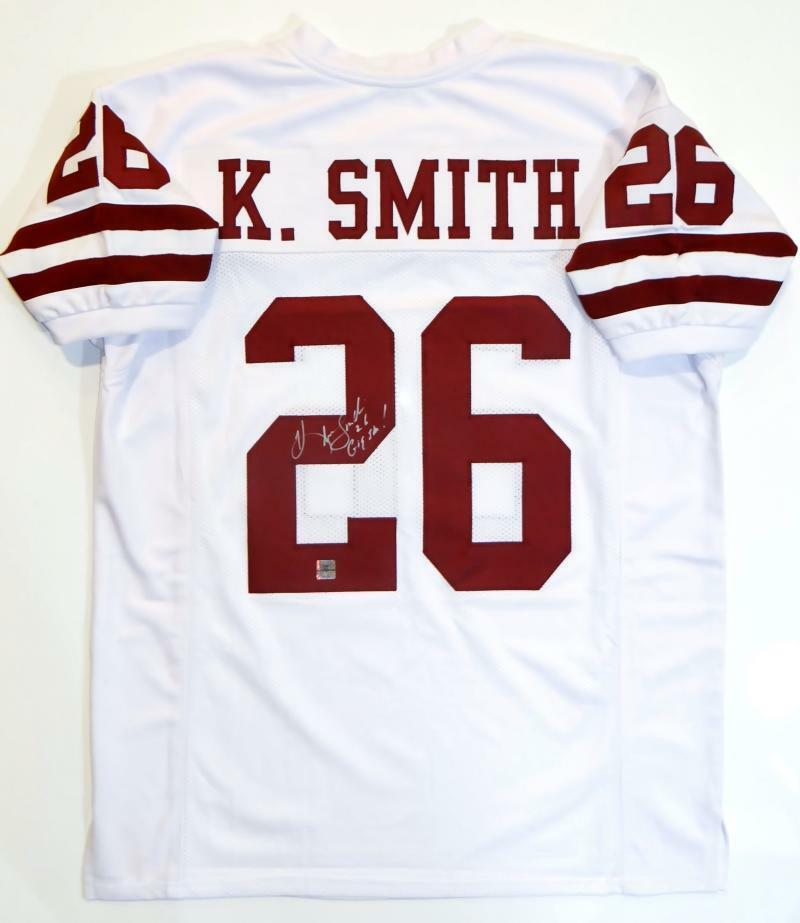 Kevin Smith Signed White College Style Jersey w/ Insc- The Jersey Source Auth *2