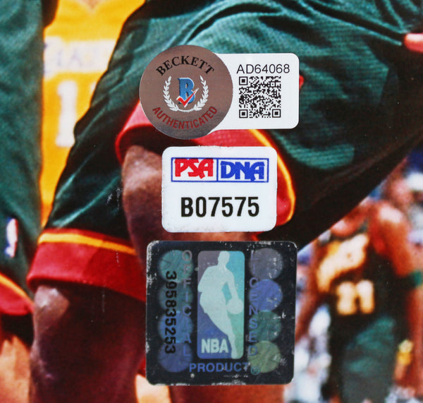 This Autographed Vs Sonics Vertical Dunking 16x20 Photo has been Personally Signed by Kobe Bryant of the Los Angeles Lakers. This item is 100% Authentic to include a Certificate of Authenticity (COA) / hologram by Beckett Authentication Services. The authenticity can be verified on Beckett Authentication Services website.