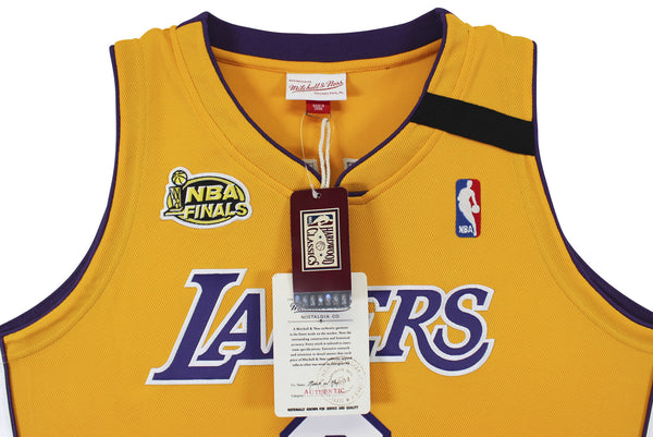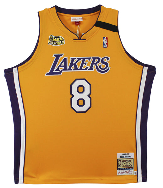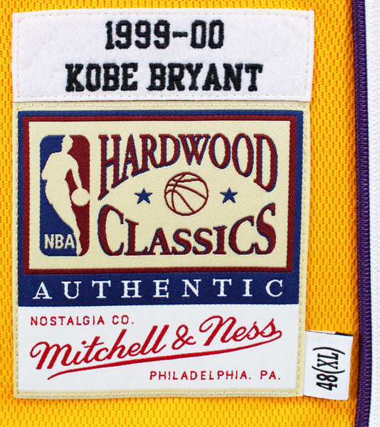 This Autographed Yellow 1999-00 Mitchell & Ness Hardwood Classics Authentic Jersey has been Personally Signed by Kobe Bryant of the Los Angeles Lakers. This item is 100% Authentic and comes with a PSA/DNA Certification Card and a matching numbered Hologram. The authenticity can be verified on Professional Sports Authenticator website. This is a X-Large sized Jersey.