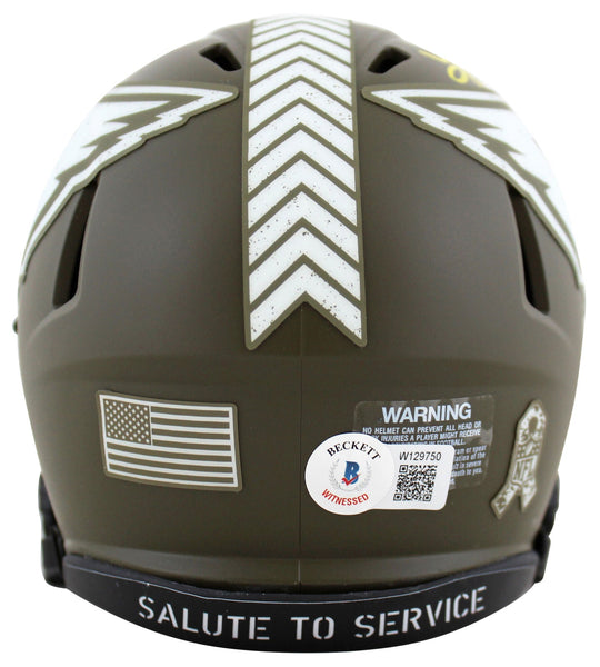 This Autographed Alternate Salute To Service Speed Mini Helmet has been Personally Signed by Kurt Warner of the Arizona Cardinals. This item is 100% Authentic to include a hologram by Beckett Authentication Services. This item may come with the new Beckett Authentication hologram that has a scannable QR code rather than the traditional COA. If you would like to have a COA, you are welcome to reach out to Beckett for a printed certification once you receive your item. This is a BAS Witnessed Protection Program item which means a Beckett Authentication Service representative was present when this item was being signed. We conducted an autograph signing with Kurt Warner where multiples of the same item were signed. While the photographs are representative of this item, the size, placement and strength of the signature may vary. Each item is hand signed, therefore, each autograph is unique. This item can be verified through BAS Witnessed.