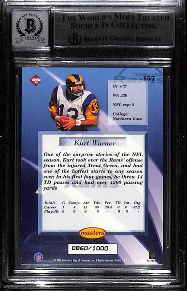 Kurt Warner Signed '99 Edge Masters Galvanized /1000 Card Grade 10 BAS 43896