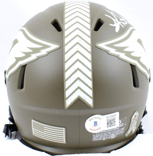 Kurt Warner Autographed Arizona Cardinals Salute to Service Speed Mini Helmet-Beckett W Hologram *White This is a Kurt Warner of the Arizona Cardinals hand autographed Riddell Salute to Service Speed mini helmet. This item has a Beckett Witnessed Authentication, which comes with a numbered hologram and a QR code for verification. You can view this item on the Beckett Authentication website, it shows when and where the item was signed. It was signed either at a public autograph appearance or a private signing. This is a stock photo of the item. Although you may not receive this exact item, the item you receive is virtually identical, brand new, and in great shape.