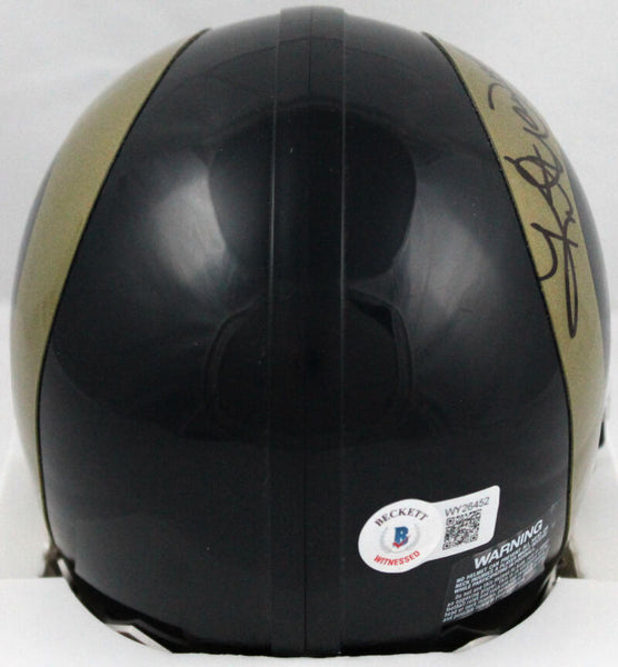 Kurt Warner Signed St. Louis Rams 00-16 Mini Helmet w/HOF/SB MVP-Beckett W Hologram*Black This is a Kurt Warner of the St. Louis Rams hand autographed Riddell 00-16 throwback mini helmet with "HOF,SB MVP" inscription. This item has a Beckett Witnessed Authentication, which comes with a numbered hologram and a QR code for verification. You can view this item on the Beckett Authentication website, it shows when and where the item was signed. It was signed either at a public autograph appearance or a private signing. This is a stock photo of the item. Although you may not receive this exact item, the item you receive is virtually identical, brand new, and in great shape.