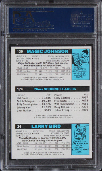 This Autographed Autographs Graded Gem Mint 10! 1980 Topps Scoring Leaders Auto Card has been Personally Signed by Magic Johnson, Larry Bird & Julius "Dr. J" Erving. This item is 100% Authentic, it comes slabbed and authenticated by PSA/DNA. The authenticity can be verified on Professional Sports Authenticator website.