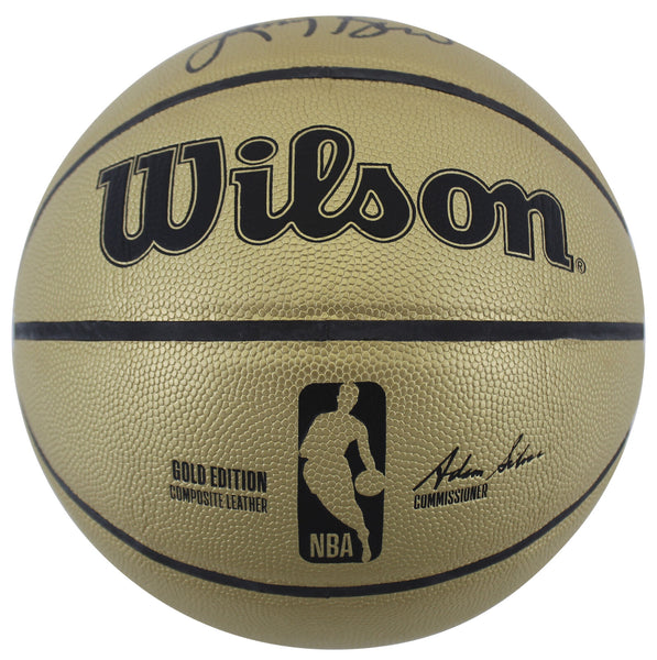 This Autographed Wilson Indoor/Outdoor Gold Edition Basketball has been Personally Signed by Larry Bird of the Boston Celtics. This item is 100% Authentic to include a hologram by Beckett Authentication Services. This item will come with an affixed Beckett Authentication Services (BAS) authentication sticker, which includes a scannable QR code to verify authenticity. Please note that Beckett no longer provides serial-numbered COA cards, and the attached BAS sticker will serve as the complete authentication for this item. This is a BAS Witnessed Protection Program item which means a Beckett Authentication Service representative was present when this item was being signed. We conducted an autograph signing with Larry Bird where multiples of the same item were signed. While the photographs are representative of this item, the size, placement and strength of the signature may vary. Each item is hand signed, therefore, each autograph is unique. This item can be verified through BAS Witnessed.