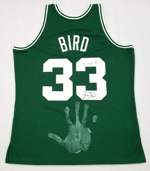 Larry Bird Autographed Boston Celtics M&N Swingman Jersey W/ Hand Print Beckett