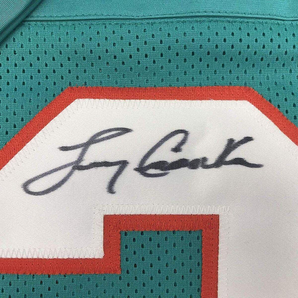 Autographed/Signed Larry Csonka Miami Teal Football Jersey JSA COA Jersey has no brand names or logos. This is a custom jersey and was not manufactured by or in any manner associated with any professional sports league or manufacturer. This custom jersey carries no professional sports league designation. The item is intended to be an autographed collectible. The custom jersey displays the name and number of the player. This item in no way is affiliated with or connected to any professional sports organization. Size is XL.