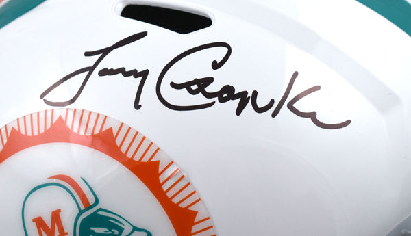 This is a hand autograph of Larry Csonka of the Miami Dolphins on a Riddell Football Full Size 1972 Speed Replica Helmet. This item has a Beckett Witness Authentication, which comes with a numbered hologram and a QR code for verification. You can view this item on the Beckett Authentication website and it shows when and where the item was signed. It was signed either at a public autograph appearance or a private signing. This is a stock photo of the item. Although you may not receive this exact item, the item you receive is virtually identical and brand new in great shape. This is a hand autograph of Larry Csonka of the Miami Dolphins on a Riddell Football Full Size 1972 Speed Replica Helmet. This item has a Beckett Witness Authentication, which comes with a numbered hologram and a QR code for verification. You can view this item on the Beckett Authentication website and it shows when and where the item was signed. It was signed either at a public autograph appearance or a private signing. This is a stock photo of the item. Although you may not receive this exact item, the item you receive is virtually identical and brand new in great shape.