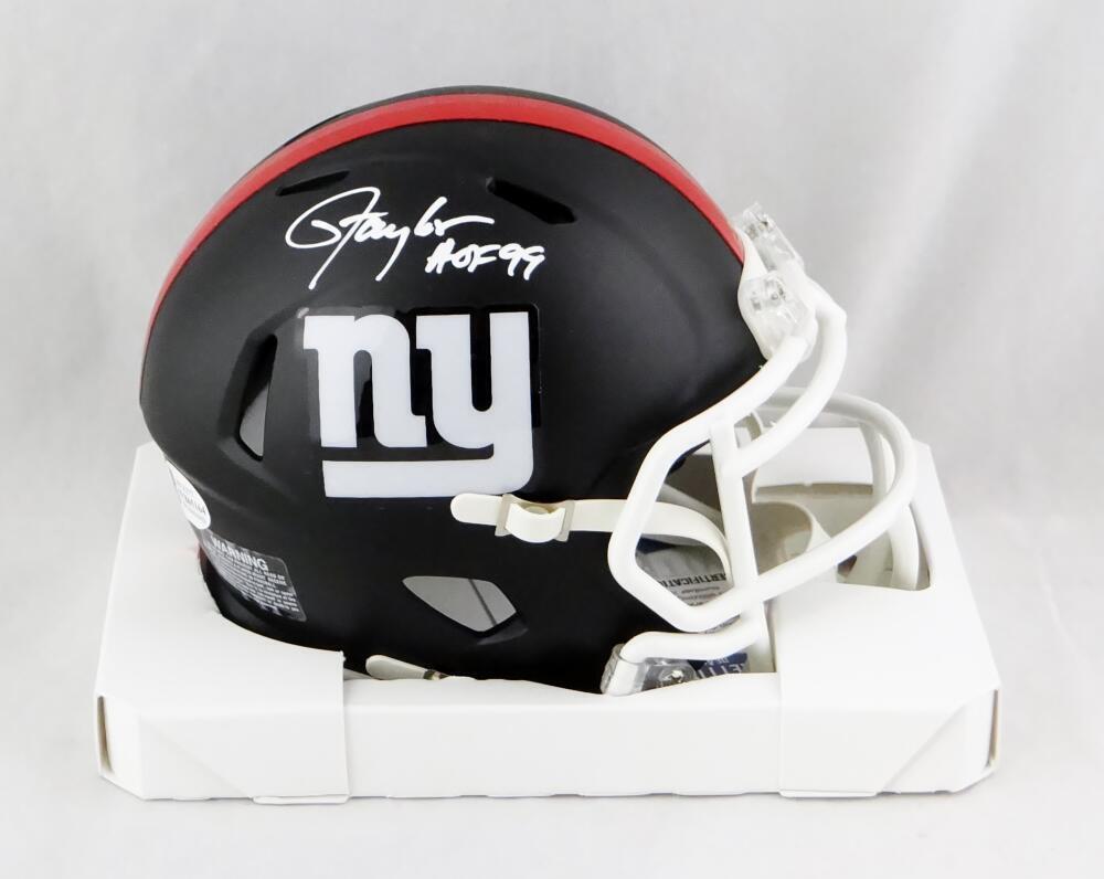 Lawrence Taylor Autographed NY Giants Flat Black Speed Mini Helmet w/HOF- Beckett W *White This is a Lawrence Taylor of the New York Giants hand autographed Riddell Football Flat Black Speed Mini Helmet. This item has a Beckett Witnessed Authentication, which comes with a numbered sticker and a matching Beckett Certificate of Authenticity. You can view this item on the Beckett Authentication website and it shows when and where the item was signed. It was signed either at a public autograph appearance or a private signing. This is a stock photo of the item. Although you may not receive this exact item, the item you receive is virtually identical, brand new and in great shape.