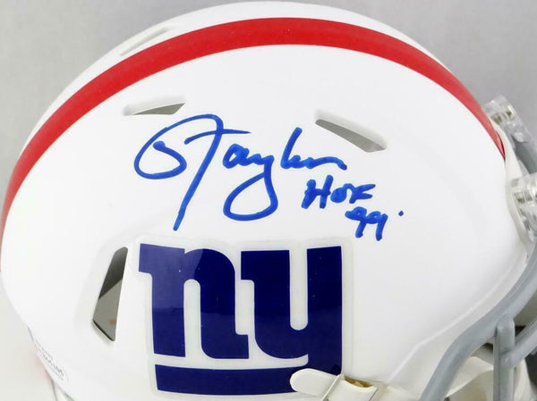 Lawrence Taylor Autographed NY Giants Flat White Mini Helmet w/HOF - Beckett W Auth *Black This is a hand autographed Mini Helmet of Lawrence Taylor of the New York Giants on Riddell Football Flat White Speed Mini Helmet. This item has a Beckett Witnessed Authentication, which comes with a numbered and a matching Beckett Certificate of Authenticity. You can view this item on the Beckett Authentication website and it shows when and where the item was signed. It was signed either at a public autograph appearance or a private signing. This is a stock photo of the item. Although you may not receive this exact item, the item you receive is virtually identical and brand new in great shape.