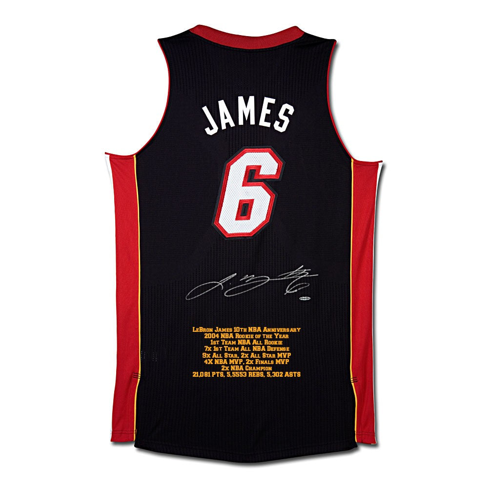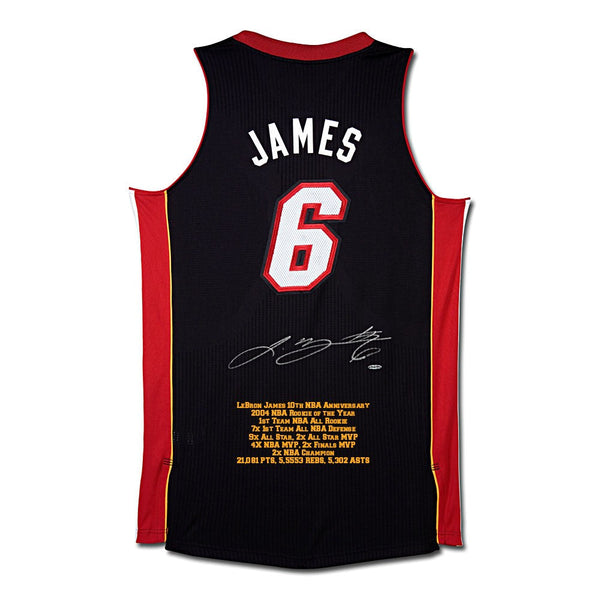 LeBron James Signed Miami Heat 10th Anniversary Stats Jersey