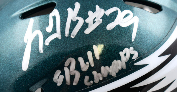 LeGarrette Blount Autographed Philadelphia Eagles Speed Mini Helmet w/SB Champs-Beckett W Hologram *Silver This is a hand autograph of LeGarrette Blount of the Philadelphia Eagles on a Riddell Football Speed Mini Helmet. Inscribed SB Champs. This item has a Beckett Witnessed Authentication, which comes with a numbered hologram and a QR code for verification. You can view this item on the Beckett Authentication website and it shows when and where the item was signed. It was signed either at a public autograph appearance or a private signing. This is a stock photo of the item. Although you may not receive this exact item, the item you receive is virtually identical and brand new in great shape.