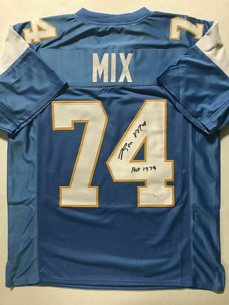 Autographed/Signed RON MIX "HOF 1979" San Diego Powder Blue Jersey JSA COA Auto This is a custom jersey and was not manufactured by or in any manner associated with any professional sports league or manufacturer. This custom jersey carries no professional sports league designation. The item is intended to be an autographed collectible. Reference of team in the title is to allow the purchaser a point of association. The custom jersey displays the name, number and authenticated signature of the player. This item in no way is affiliated with or connected to any professional sports organization. The autograph, as always is guaranteed to be authentic and has been certified as authentic by a third-party, trusted authenticator. Size is XL unless otherwise noted.