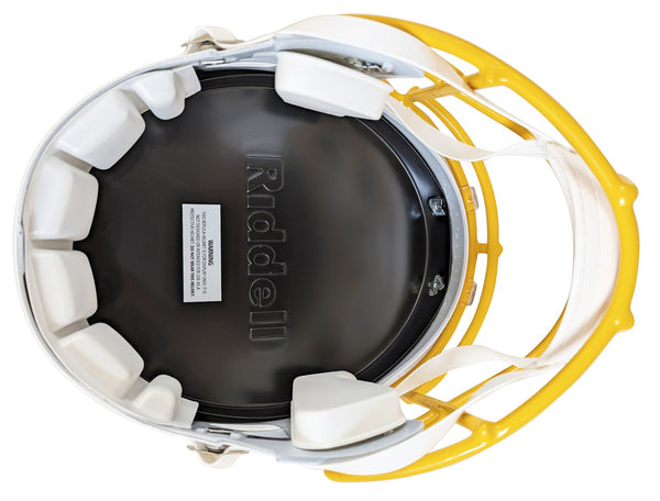 This Autographed Riddell Full Size Speed Rep Helmet W/ Uv Mirrored Back Acrylic Display Case has been Personally Signed by Omarion Hampton of the Los Angeles Chargers. This item is 100% Authentic to include a hologram by Beckett Authentication Services. This item will come with an affixed Beckett Authentication Services (BAS) authentication sticker, which includes a scannable QR code to verify authenticity. Please note that Beckett no longer provides serial-numbered COA cards, and the attached BAS sticker will serve as the complete authentication for this item. This is a BAS Witnessed Protection Program item which means a Beckett Authentication Service representative was present when this item was being signed. We conducted an autograph signing with Omarion Hampton where multiples of the same item were signed. While the photographs are representative of this item, the size, placement and strength of the signature may vary. Each item is hand signed, therefore, each autograph is unique. This item can be verified through BAS Witnessed.