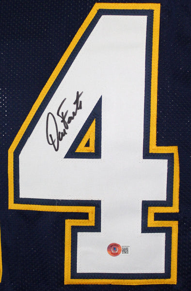 Dan Fouts Autographed Dark Blue Pro Style Jersey- Beckett W Hologram *Black THIS IS NOT AN NFL JERSEY. THIS HAS NO TAGS, NO LOGOS, NO EMBLEMS. This is a Hand Autograph of Dan Fouts on a custom made (Non Name Brand) authentic style jersey with stitched letters and numbers. This item has a Beckett Witness Authentication, which comes with a numbered Sticker hologram and a QR code for verification. You can view this item on the Beckett Authentication website. It was signed either at a public autograph appearance or a private signing. This is a stock photo of the item. Although you may not receive this exact item, the item you receive is virtually identical and brand new in great shape. Jersey size is XL.